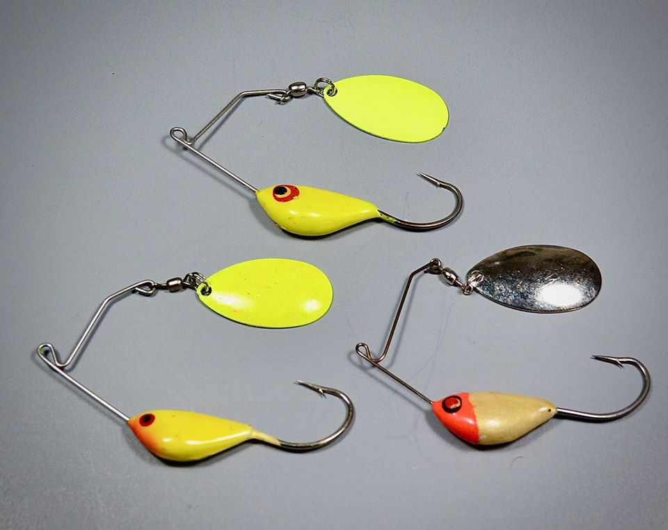 I’m not sure when Lindy came out with their Spin Rig, but I’m guessing sometime in the early to mid 1970s. But I became a fan of them right off the start. The Spin Rig is designed to present live bait, a minnow or chub or even a nightcrawler or leech. It came in many sizes. The smallest, I think was about an eighth ounce and the biggest a half ounce. At least those were the sizes I used the most. It was designed by Ron Lindner and was the perfect guide lure. All you had to do was troll it along a weedline or other structure and whatever gamefish was down there would hit it. I used to cast it across those big shallow reefs on Lake Vermilion in northeast Minnesota. I trolled it along weedlines on West Lake Okoboji. It traveled with me to nearly every fly-in in Manitoba and Ontario. It was a dynamite northern pike lure. It was so well-balanced you could cast it out and let it helicopter straight down to the bottom and then lift and drop it back to the boat. I used the big half ounce version tipped with a 6-inch plastic curly tail on Manitoba’s Cross Bay in 1979 to catch northerns pushing 20 pounds. That’s where I learned big northerns can’t stand a lure dropping below their level. They smashed it every time. And then Lindy discontinued the lure. I still had some in quarter, three-eighths and half-ounce size. So I decided to make my own molds. I used plaster of Paris and using the originals as a pattern, soon had three molds. I found suitable hooks at Morey Wheeler’s old Fisherman’s Factory Outlet in South Sioux. The hook had to be bent just right to make the lure work correctly. If you were careful (and lucky) you could pour quite a few out of each mold. I think it was about 10 years ago that I finally threw the last one away. I suppose the Spin Rig didn’t sell well because people were so used to spinnerbaits having rubber or plastic skirts. Lindy did sell one at the time called the Squirrel Spin, and I still have a couple of those in original packaging. They featured grey squirrel tail hair for a skirt. Of the three in the photo, one is an original Lindy. It’s the one at the lower left. The red and white one has a coating of epoxy over the paint to keep it from chipping. After probably 40 years, it has yellowed. But it will still catch fish.