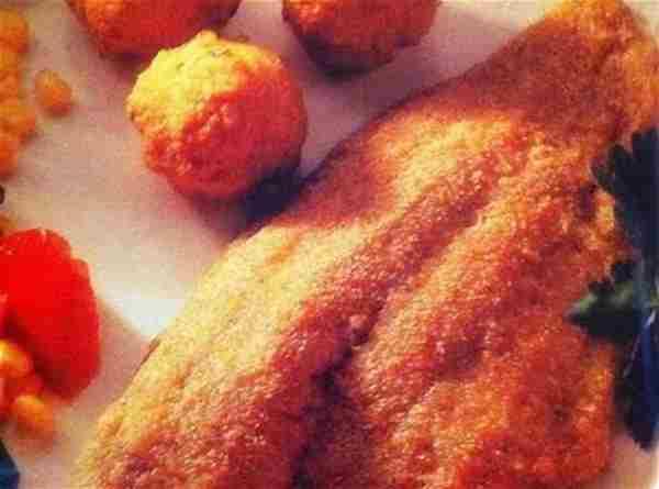Sprinkle both sides of the fish with salt & pepper. Beat eggs slightly and blend in milk. Dip fish in this
