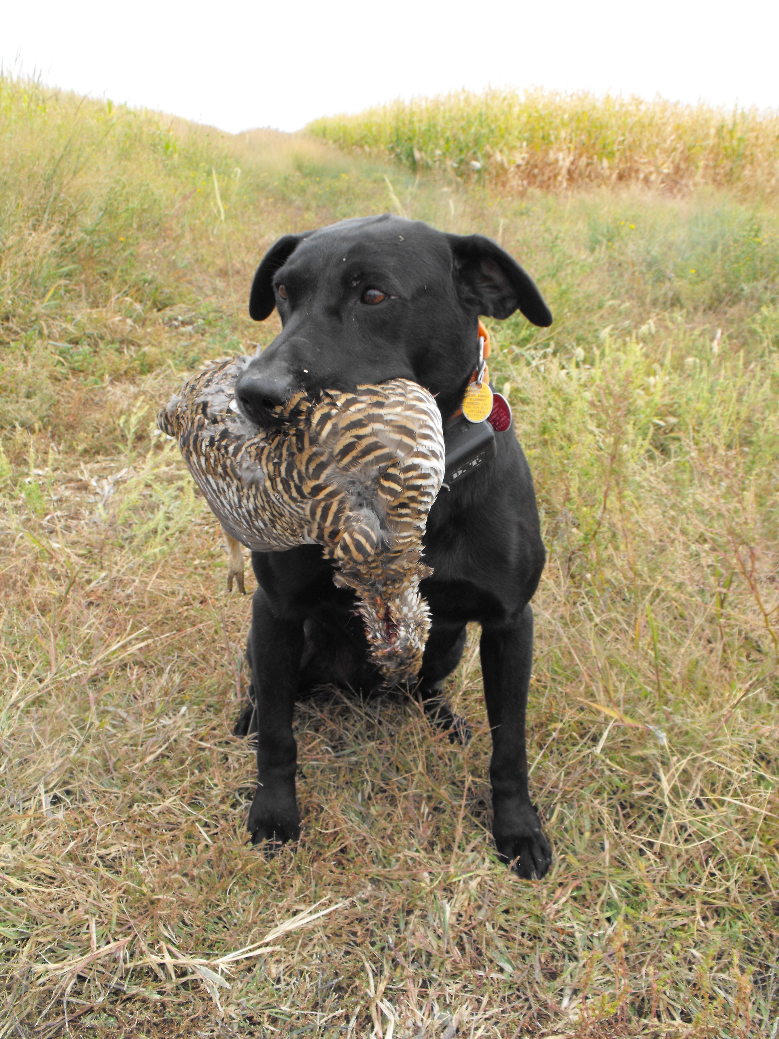 “Moe” loved to retrieve as this picture shows where he brought a prairie chicken back. It did not matter what we hunted, if I knocked it down, “Moe” would bring it back. He was such a great dog, who is no longer with us and one that will surely be missed. (Gary Howey Photo)