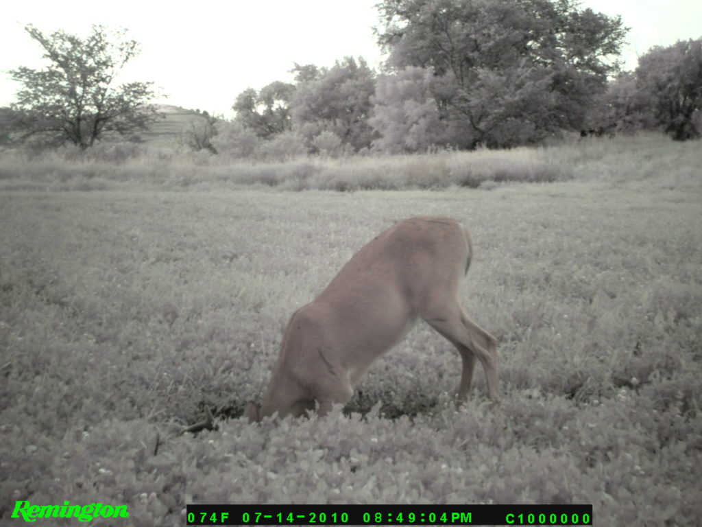 Mineral licks, like this RAK lick, if placed in areas deer travel, can help create a healthy herd.  This buck hit this lick several times a week and before it could be refreshed, goes deep in the ground to get the minerals it’s needing to grow to its full potential.(Game Camera Photo)