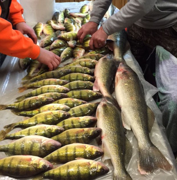 This is the catch of walleye and perch made by Hidden Hill Lodge guests from Nebraska the day before the cold front hit. They fished Hidden Lake, a private slough owned by Hidden Hill Lodge