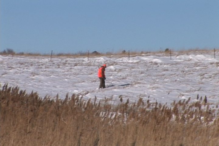 We were all having the same problem, except for the dogs as they could stay on top of the snow, following the numerous deer trails, which ran through the slough and working through the cattails trying to root out the birds that were holding tight.